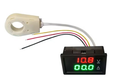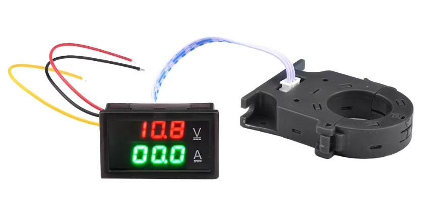 The box is equipped with 4-segment digital meters for voltage and current. (